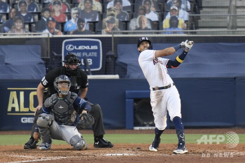 【10月16日 AFP】20MLBは15日、プレーオフのア・リーグ優勝決定シリーズ(7回戦制)が行われ、王手をかけられ後がないヒューストン・アストロズ(Houston Astros)は、9回裏にカルロス・コレア(Carlos Correa)がサヨナラ本塁打を放ってタンパベイ・レイズ(Tampa Bay Rays)に4-3で勝利。2夜連続で敗退の危機を切り抜けたアストロズは戦績を2勝3敗とし、シリーズの行方を6戦目に持ち込んだ。