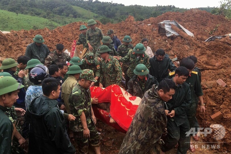 【10月18日 AFP】ベトナム中部クアンチ(Quang Tri)省で18日、軍の施設が大規模な土砂崩れに巻き込まれ、兵士11人が死亡した。さらに11人が土砂の下敷きになっており、現在も捜索が続けられている。