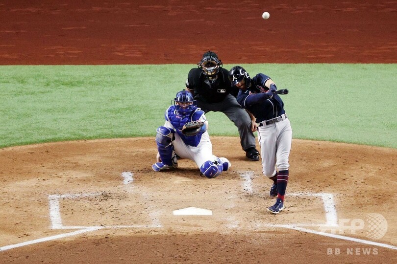 この日はブレーブスが2-0、3-2とリードしたが、いずれもドジャースが同点に追いついた。ドジャースは6回に代打エンリケ・ヘルナンデス(Enrique Hernandez)の本塁打で3-3に追いつくと、続く7回にベリンジャーが試合を決める飛距離約120メートルの一発を右越えにたたき込んだ。(c)AFP