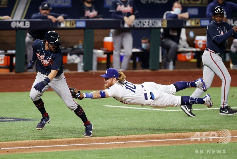 【10月19日 AFP】20MLBは18日、プレーオフのナ・リーグ優勝決定シリーズ(7回戦制)が行われ、ロサンゼルス・ドジャース(Los Angeles Dodgers)は4-3でアトランタ・ブレーブス(Atlanta Braves)に勝利し、シリーズ戦績4勝3敗で直近4年で3度目となるワールドシリーズに駒を進めた。