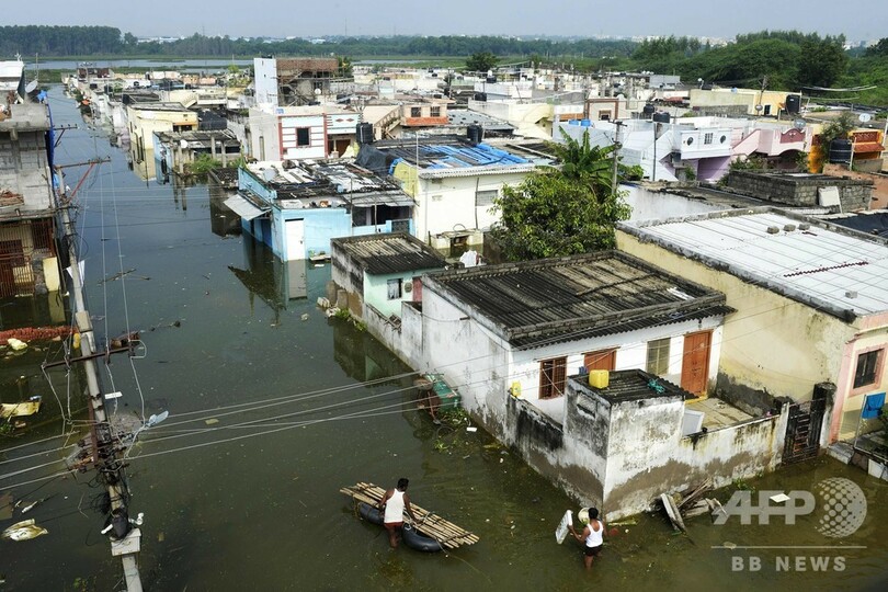 目の前は一面水浸し… 洪水被災地のインド南部ハイデラバード