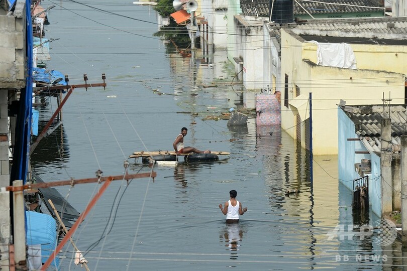 目の前は一面水浸し… 洪水被災地のインド南部ハイデラバード