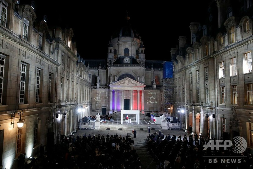 マクロン氏は、同国の最高勲章「レジオン・ドヌール(Legion d'Honneur)」をパティさんに授与。弔辞では、パティさんはフランス共和国の世俗的、民主的な価値観を体現したことで「臆病者たち」により殺されたと述べ、「彼は私たちの未来を奪おうとしたイスラム主義者らにより殺害された」、「私たちの未来は決して渡さない」と宣言した。