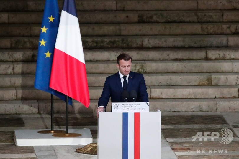 【10月22日 AFP】イスラム教の預言者ムハンマド(Prophet Mohammed)の風刺画を授業で見せたことを理由に殺害されたフランスの歴史教師サミュエル・パティ(Samuel Paty)さん(47)の国葬が21日、パリのソルボンヌ大学(Sorbonne University)で営まれた。エマニュエル・マクロン(Emmanuel Macron)大統領は弔辞で、「われわれは風刺画をやめない」と宣言した。