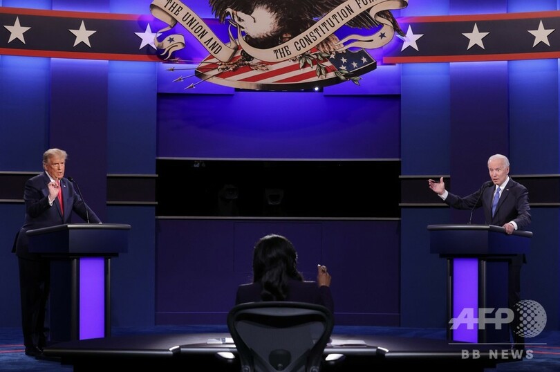 【10月23日 AFP】米大統領選を12日後に控え、共和党のドナルド・トランプ(Donald Trump)大統領(74)と民主党のジョー・バイデン(Joe Biden)前副大統領(77)は22日、テネシー州ナッシュビル(Nashville)で最後のテレビ討論会に臨み、互いの汚職疑惑や新型コロナウイルス対応について激しい応酬を交わした。世論調査で劣勢のトランプ氏にとっては形勢を逆転する最後の大きなチャンスとみられていたが、両者とも相手に決定的な打撃を与えることはできなかった。