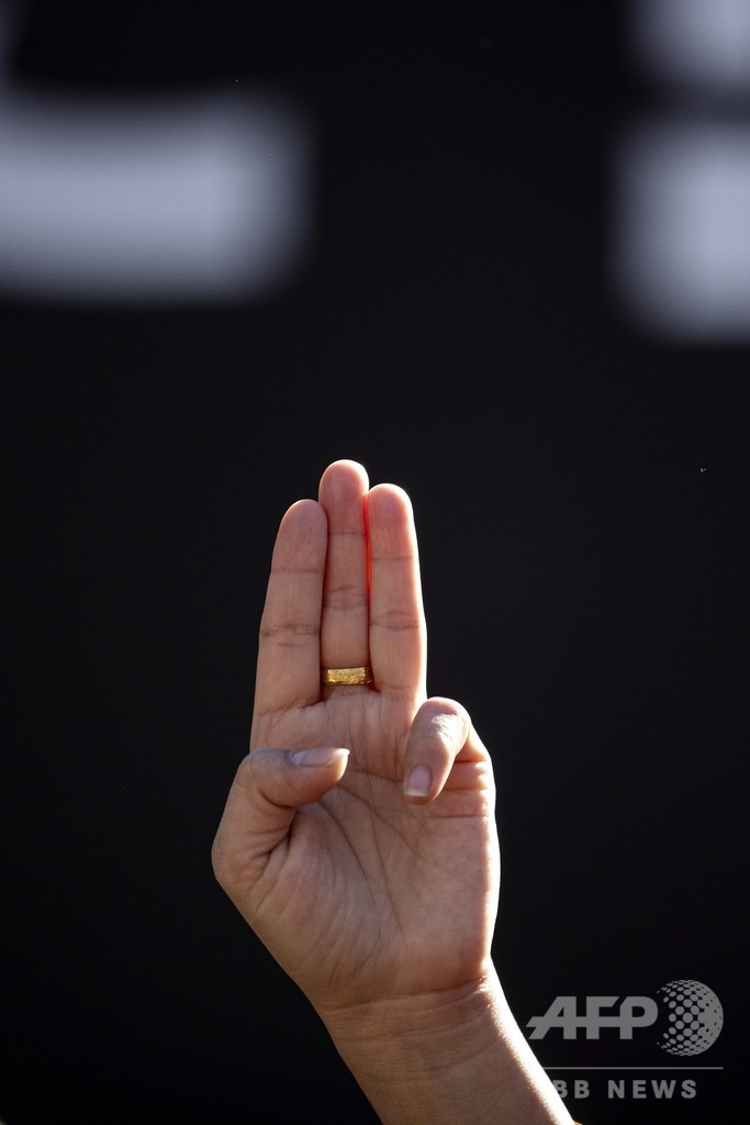 【10月25日 AFP】東京都渋谷区で25日、タイの民主化運動を支持する集会が行われ、参加者らがプラユット・チャンオーチャー(Prayut Chan-O-Cha)政権への抗議の意を示す横断幕や、独裁支配からの自由を示す3本指のサインを掲げた。(c)AFP