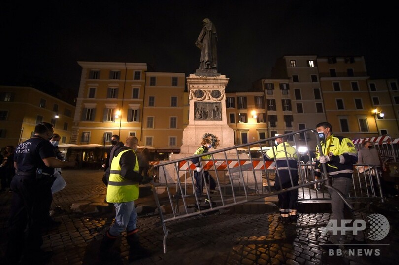 しかし、人々は社会的孤立と経済苦に疲弊しており、より厳格な制限措置に反発を示している。イタリアの首都ローマで家族経営のシーフードレストラン「ラ・トッリチェッラ(La Torricella)」を所有するアウグスト・ダルフォンシ(Augusto D'Alfonsi)さんは、新たな制限措置の発表を受けAFPに、「これは私たちを破滅させる」と明言。「今年、既に顧客の50%を失った。政府の補助金なしには、私たちはもう終わりだ」と話した。ローマでは24日夜から25日未明にかけ、極右グループ数十人が夜間外出禁止令に抗議するデモを実施。花火を打ち上げ、ごみ箱を燃やし、投射物を放って抗議し、警察の機動隊と衝突した。