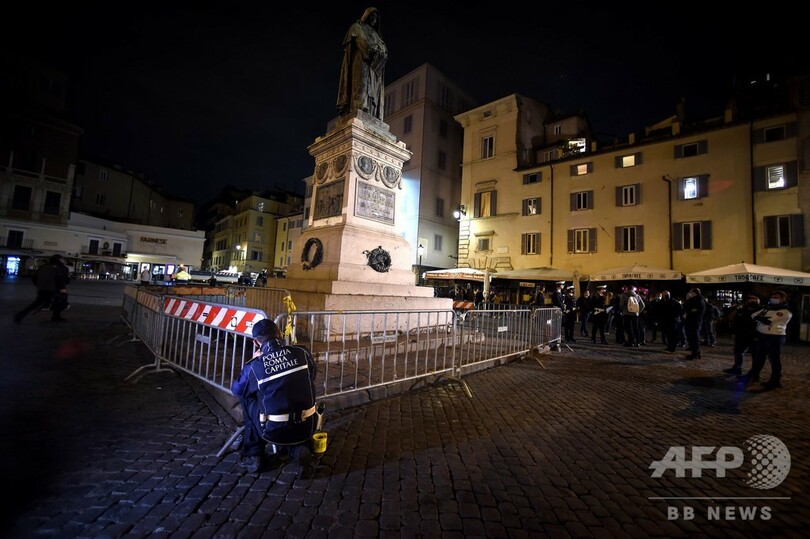 しかし、人々は社会的孤立と経済苦に疲弊しており、より厳格な制限措置に反発を示している。イタリアの首都ローマで家族経営のシーフードレストラン「ラ・トッリチェッラ(La Torricella)」を所有するアウグスト・ダルフォンシ(Augusto D'Alfonsi)さんは、新たな制限措置の発表を受けAFPに、「これは私たちを破滅させる」と明言。「今年、既に顧客の50%を失った。政府の補助金なしには、私たちはもう終わりだ」と話した。ローマでは24日夜から25日未明にかけ、極右グループ数十人が夜間外出禁止令に抗議するデモを実施。花火を打ち上げ、ごみ箱を燃やし、投射物を放って抗議し、警察の機動隊と衝突した。