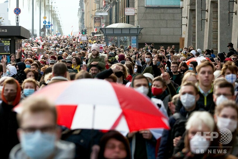 【10月27日 AFP】ベラルーシの反政権派指導者スベトラーナ・チハノフスカヤ(Svetlana Tikhanovskaya)氏は、アレクサンドル・ルカシェンコ(Alexander Lukashenko)大統領に対し要求していた辞任の期限が過ぎたことから、支持者らが26日、全国でストライキを開始したと宣言した。