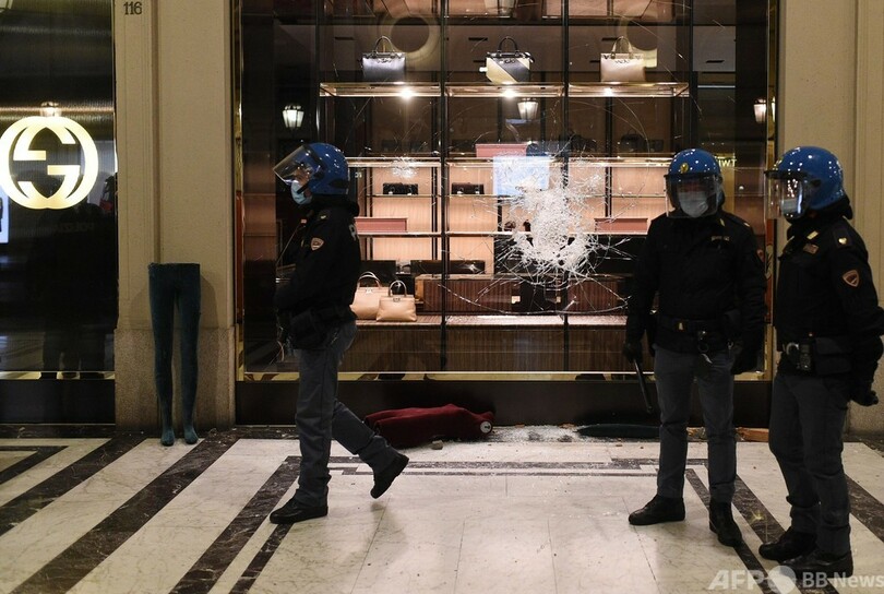 ミラノ(Milan)では、複数の路面電車の車両が壊されたり、ごみ箱が放火されたりする破壊行為が発生。機動隊がガラス瓶などを投げた若者の集団に向かって催涙ガスを使用した。ミラノに近いトリノ(Turin)や南部ナポリ(Naples)でも同様の事態となった。