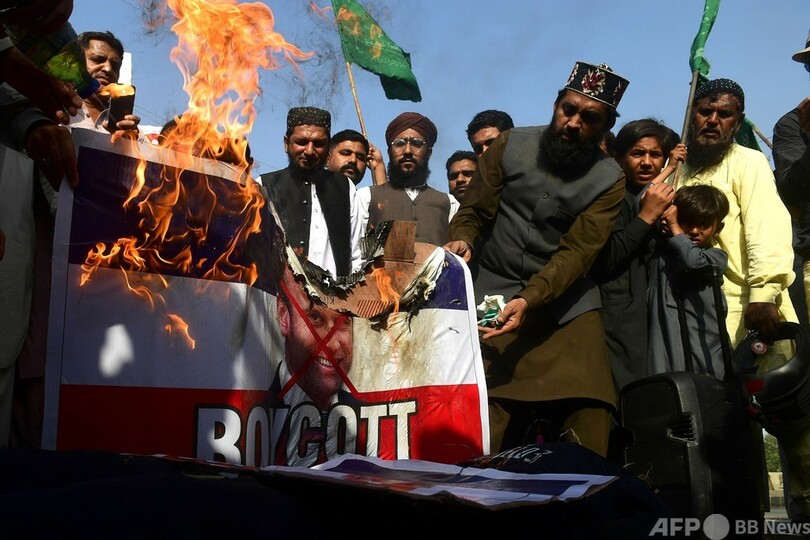 しかし、イスラム教徒が多数を占める国々では先週末、マクロン氏の発言への反発から抗議デモが相次いで発生した。