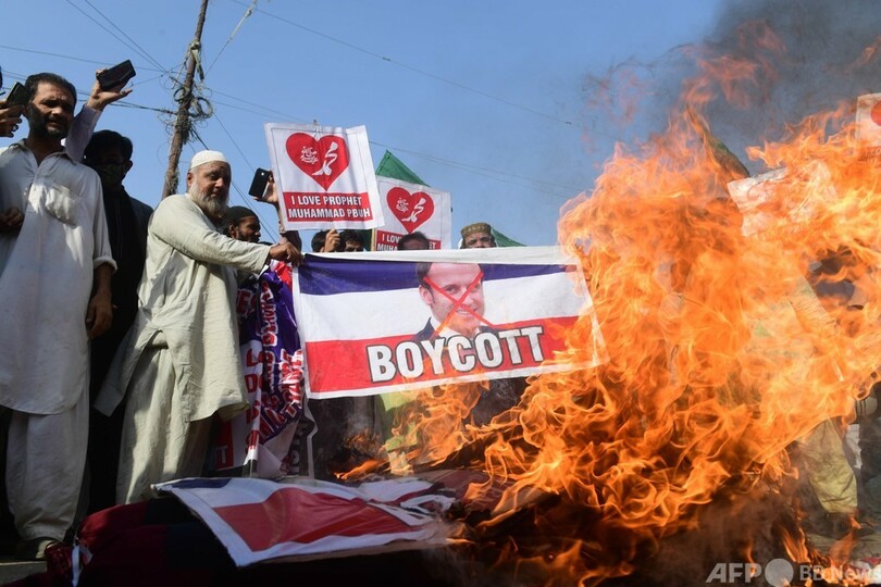 しかし、イスラム教徒が多数を占める国々では先週末、マクロン氏の発言への反発から抗議デモが相次いで発生した。