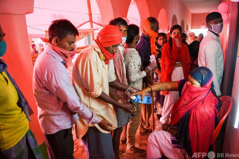【10月28日 AFP】インド東部ビハール(Bihar)州で28日、新型コロナウイルス流行後に行われるものとしては世界最大の選挙の投票が始まった。政府はマスク着用とソーシャル・ディスタンシング(対人距離の確保)を守るよう呼び掛けているが、多くの人はこれを無視。投票所はすし詰め状態だった。