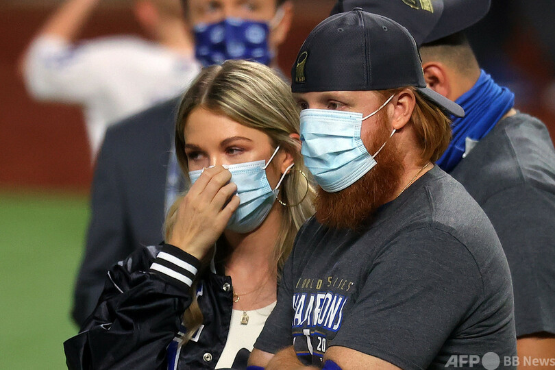 優勝の瞬間にはフィールドにいなかったものの、ターナーはチームの集合写真ではデーブ・ロバーツ(Dave Roberts)監督の隣でマスクを外していた。その後トロフィーを手にして夫人にキスをしたターナーは、ツイッター(Twitter)で自身は無症状だと投稿している。(c)AFP