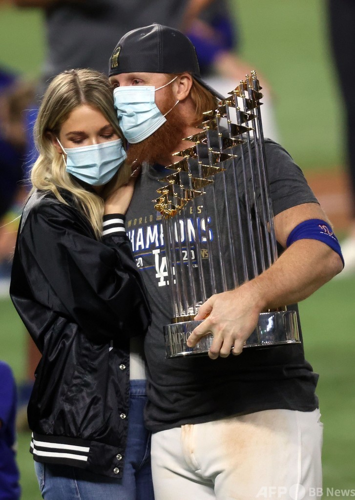 優勝の瞬間にはフィールドにいなかったものの、ターナーはチームの集合写真ではデーブ・ロバーツ(Dave Roberts)監督の隣でマスクを外していた。その後トロフィーを手にして夫人にキスをしたターナーは、ツイッター(Twitter)で自身は無症状だと投稿している。(c)AFP