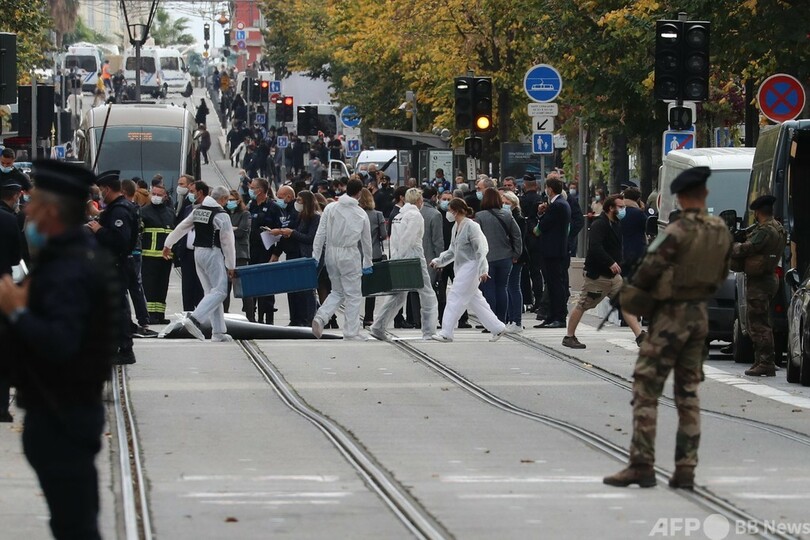 今回の事件発生の前には、授業でイスラム教の預言者ムハンマド(Prophet Mohammed)の風刺画を見せた後に斬首されて死亡した教師のサミュエル・パティ(Samuel Paty)さんへの連帯心を示すため、仏全土で大規模な抗議活動が行われたばかり。
