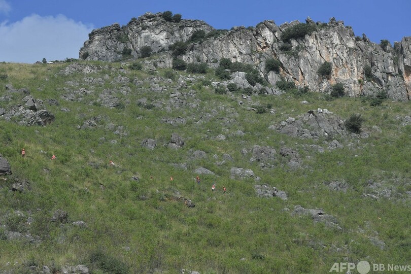 黒山山麓の実験エリアでは苗木の成長を確認すると同時に、苗木の出現率が低いエリアで再び散布作業を行っている。今後は実験を生かし、省内で大規模な空中植林作業に取り組む。(c)CNS/JCM/AFPBB News