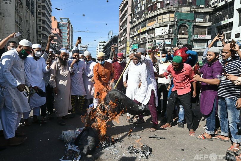 バングラデシュの首都ダッカでは30日の金曜礼拝後、大勢の人々が街頭デモを行い、マクロン氏に対する抗議の声を上げた。ダッカでは5日前にも反仏デモが行われていた。
