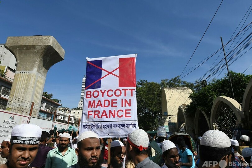 バングラデシュの首都ダッカでは30日の金曜礼拝後、大勢の人々が街頭デモを行い、マクロン氏に対する抗議の声を上げた。ダッカでは5日前にも反仏デモが行われていた。