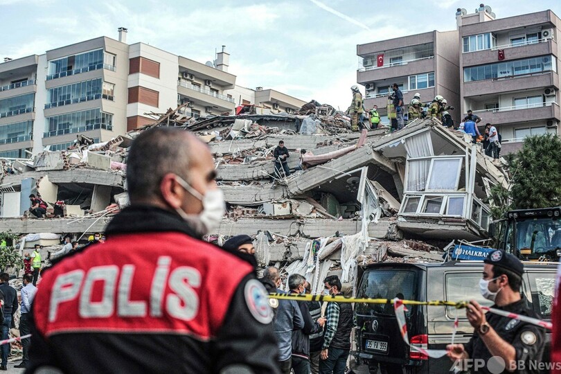 トルコでは、人口300万人を抱えるエーゲ海沿岸のリゾート都市イズミル(Izmir)とその周辺で特に大きな被害が出ている。高層の住居ビルが立ち並んでいた同市を上空から撮影した映像からは、街区全体ががれきと化した様子がみられた。