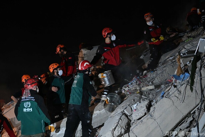 【10月31日 AFP】(更新、写真追加)トルコ・ギリシャ沖のエーゲ海(Aegean Sea)で30日午後に発生した地震で、両国では複数の建物が崩壊し、少なくとも26人が死亡した。救助隊は日付が変わった31日も、重いコンクリートの塊を素手でかき分けながら、必死に生存者の捜索に当たった。