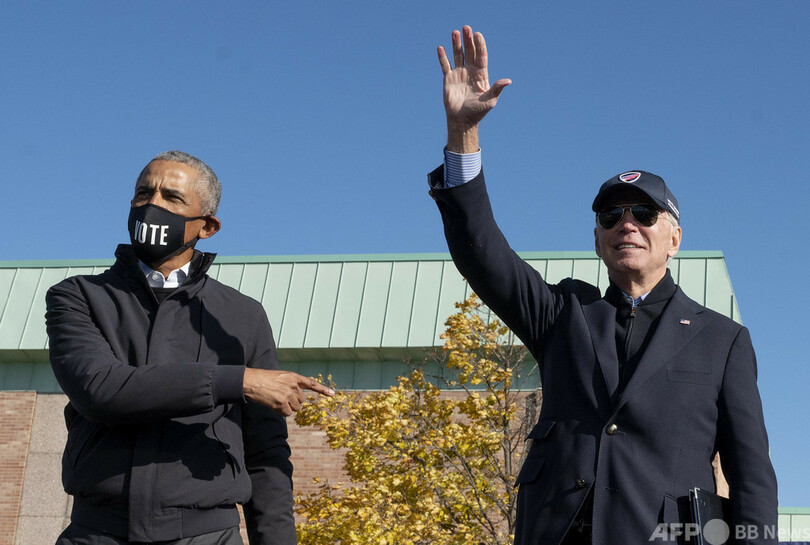 ミシガン州フリント(Flint)で演説したバイデン氏は、おそらく米国で最も人気があるであろう民主党員、バラク・オバマ(Barack Obama)前大統領と初めて一緒に登場。前回2016年の大統領選でトランプ氏がごく小差で勝利した同州で得票を伸ばそうと奮闘した。