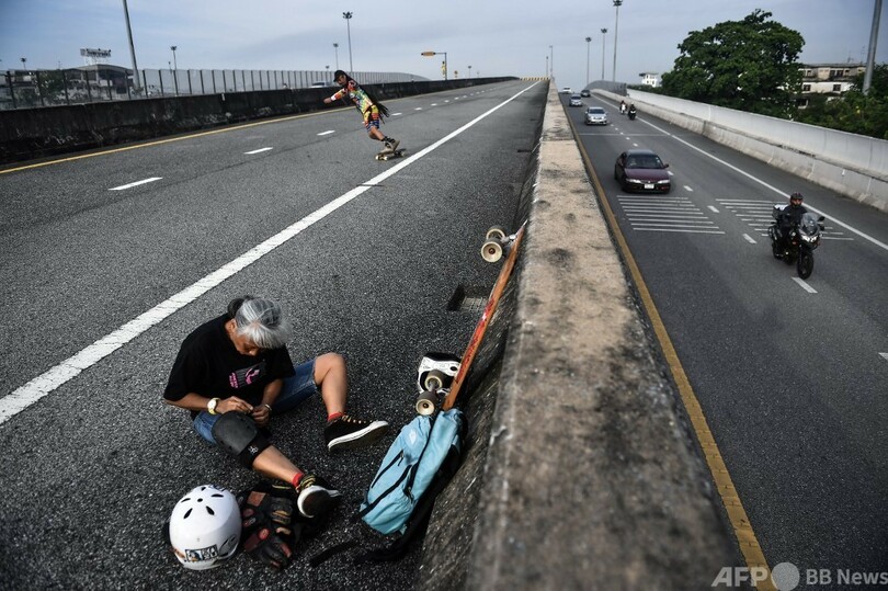 【11月8日 AFP】タイ・バンコクの人けのない建設途中の高速道路を、ノンラック・チャイリティチャイ(Nongluck Chairuettichai)さん(63)は滑走する。ロングスケートボードのタイ代表最年長メンバーもある彼女は、スケートボードを始めたことが、乳がんから回復する道に自身を立たせてくれたと話す。