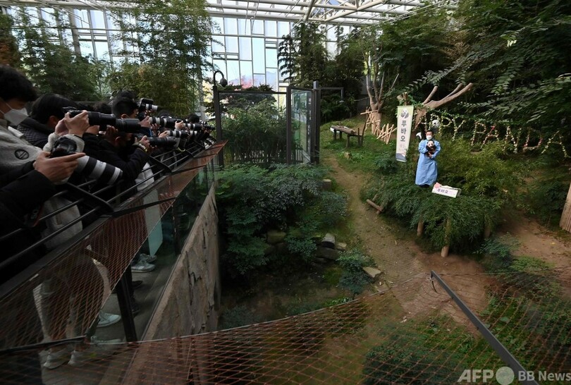 ニュース ライフ 🐼パンダ 赤ちゃんパンダ「フーバオ」と命名 韓国の野外パーク 2020年11月4日 16:41 発信地:龍仁/韓国 [ 韓国 韓国・北朝鮮 ] このニュースをシェア ‹ › ❮ 7/8 ❯ 韓国・龍仁にある野外アミューズメントパーク「エバーランド」で、赤ちゃんパンダ「フーバオ」を抱く飼育係(右、2020年11月4日撮影)。(c)Jung Yeon-je / AFP 画像作成中 ! 【11月4日 AFP】韓国・龍仁(ヨンイン、Yongin)市にある野外アミューズメントパーク「エバーランド(Everland)」は4日、107日前に生まれた赤ちゃんパンダの命名式を行い、「フーバオ」と名付けたと公表した。(c)AFP ライフ 一覧へ> メディア・報道関係・法人の方向け 写真・動画 購入のお問合せ>