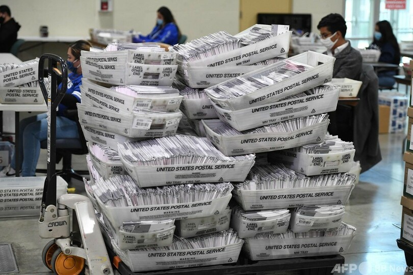 トランプ氏はここ数か月にわたり郵便投票は不正を誘発するとの根拠のない主張を展開してきており、4日にもツイッターへの投稿で「郵便票の大量投下が数えられるたびに、その比率と破壊力が甚大なのはなぜか?」と疑問を呈した。(c)AFP