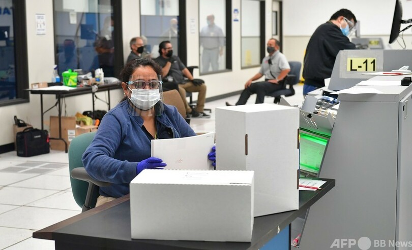 トランプ氏はここ数か月にわたり郵便投票は不正を誘発するとの根拠のない主張を展開してきており、4日にもツイッターへの投稿で「郵便票の大量投下が数えられるたびに、その比率と破壊力が甚大なのはなぜか?」と疑問を呈した。(c)AFP