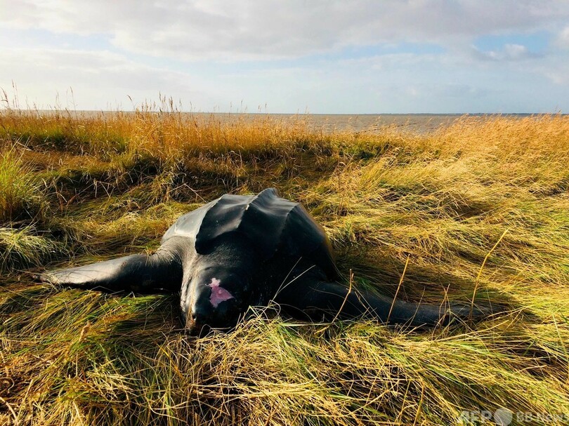 【11月5日 AFP】デンマーク・ユトランド(Jutland)南部の海岸で3日、子どもたちが巨大なカメを発見した。最寄りの自然センターから職員が駆け付け調べたところ、オサガメであることが分かった。オサガメは太平洋のメキシコ沖に生息する種。子どもたちが見つけた時、カメは既に死んでいた。(c)AFP