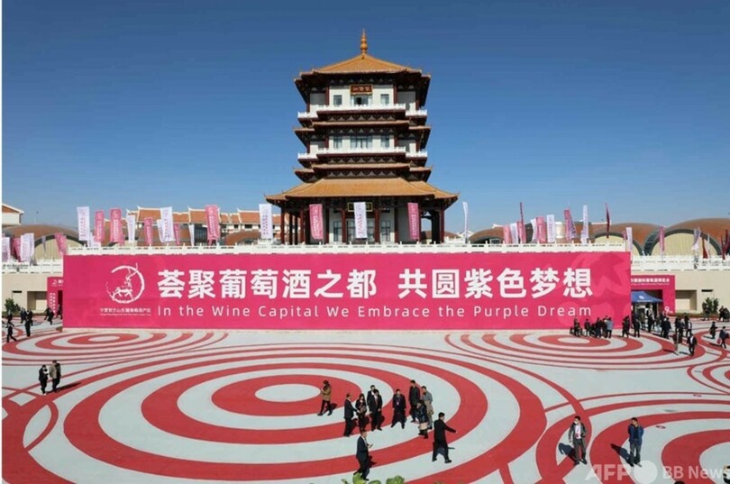 目下、賀蘭山東山麓区は60以上のブドウ品種を導入しており、数十人の国際的な醸造家を招聘(しょうへい)し、ワイン産業の発展に力を添えている。同地区では観光とワインという2大産業の融合を起こし、独自のワインツーリズム発展モデルを形成している。博覧会の期間中、寧夏回族自治区賀蘭山東山麓地区はフランスのモンルイ・シュル・ロワールやスペインのプリオラットのブドウ産地と共に「世界で最もポテンシャルの高い10大ワインツーリズム地区」に選ばれた。(c)People's Daily/AFPBB News