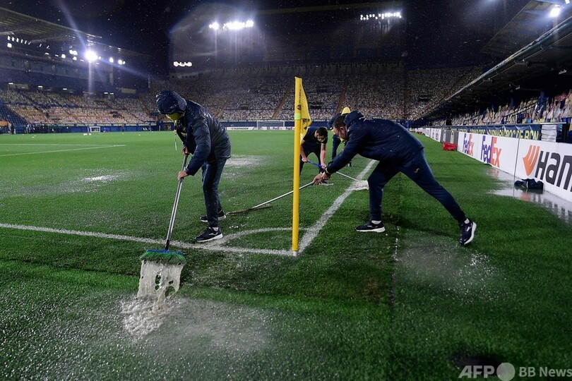 【11月6日 AFP】サッカーヨーロッパリーグ(UEFA Europa League 2020-21)で5日、ビジャレアル(Villarreal CF)の本拠地のピッチが豪雨による打撃を受け、マッカビ・テルアビブFC(Maccabi Tel-Aviv)との試合開始が1時間以上遅れる出来事があった。