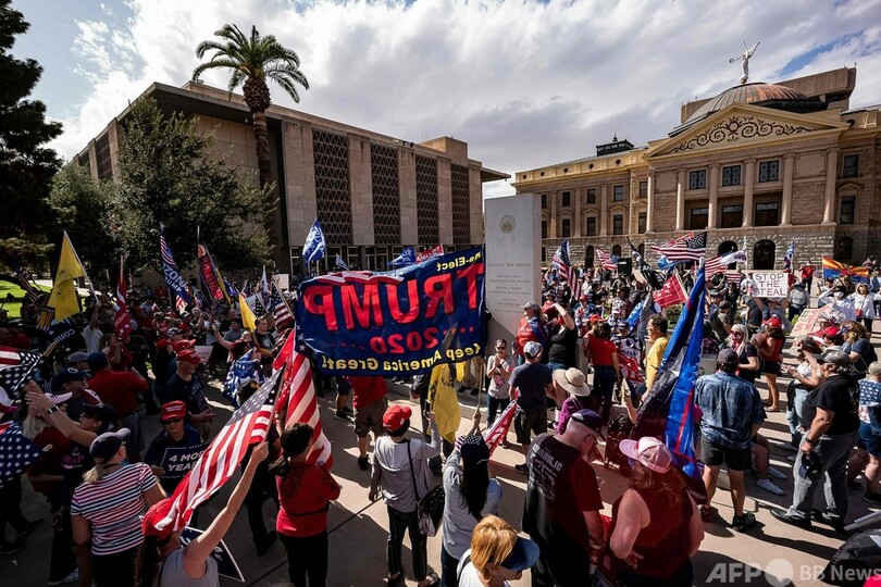 アリゾナ州フェニックス(Phoenix)、ペンシルベニア州フィラデルフィア(Philadelphia)、ジョージア州アトランタ(Atlanta)などの都市では、トランプ氏の支持者らが「#StopTheSteal(盗みをやめろ)」のスローガンの下に集結し、バイデン氏の勝利は不正行為によるものだとするトランプ氏の根拠のない主張を繰り返し唱えた。