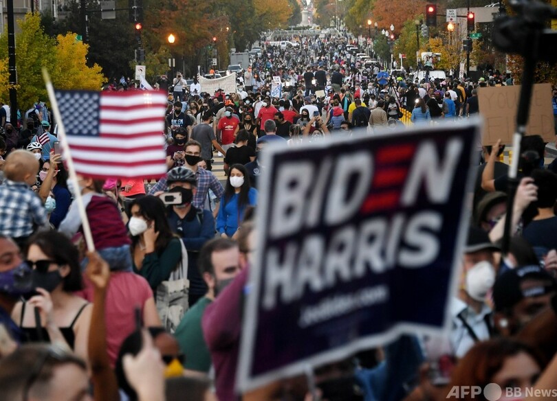 アリゾナ州フェニックス(Phoenix)、ペンシルベニア州フィラデルフィア(Philadelphia)、ジョージア州アトランタ(Atlanta)などの都市では、トランプ氏の支持者らが「#StopTheSteal(盗みをやめろ)」のスローガンの下に集結し、バイデン氏の勝利は不正行為によるものだとするトランプ氏の根拠のない主張を繰り返し唱えた。