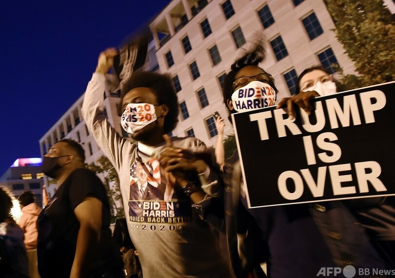 【11月8日 AFP】米大統領選で7日にジョー・バイデン(Joe Biden)前副大統領が当選確実とのニュースが報じられると、米国の多くの都市は歓喜ムードに包まれた。一方でドナルド・トランプ(Donald Trump)大統領の熱狂的支持者らは、詐欺や陰謀だと主張し、結果を受け入れることを拒否した。