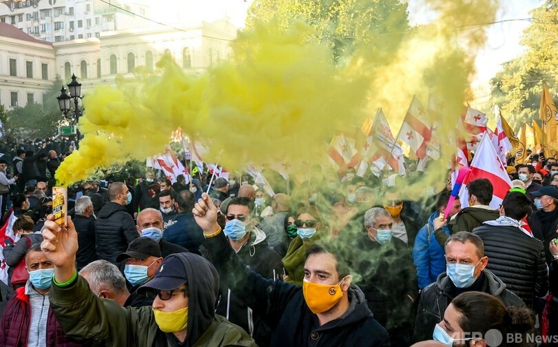ジョージア議会選、不正疑惑に4.5万人抗議デモ 放水や催涙ガスで排除も