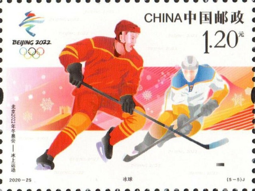 切手は1セット5枚で、それぞれ、種目であるショートトラック、フィギュアスケート、スピードスケート、カーリング、アイスホッケーをデザインに使ったものです。(c)CGTN Japanese/AFPBB News