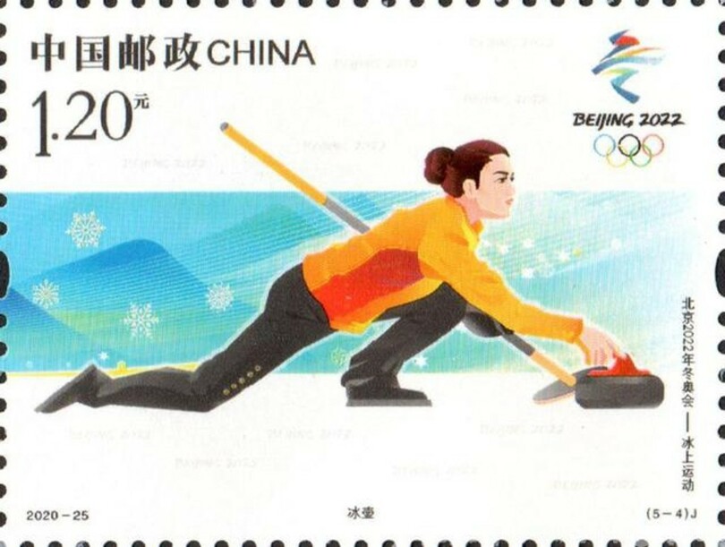 切手は1セット5枚で、それぞれ、種目であるショートトラック、フィギュアスケート、スピードスケート、カーリング、アイスホッケーをデザインに使ったものです。(c)CGTN Japanese/AFPBB News