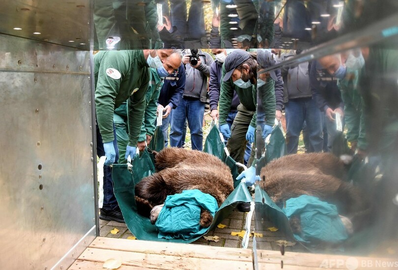 ニュース ライフ 狭いおりで3年以上飼育、北マケドニアのクマ 自然公園に引っ越し 2020年11月10日 23:47 発信地:スコピエ/北マケドニア [ 北マケドニア ブルガリア ヨーロッパ ] このニュースをシェア ‹ › ❮ 1/12 ❯ 北マケドニア・シュティプの動物園で、移送のため麻酔をかけられたクマの「テディ」(2020年11月5日撮影)。(c)Robert ATANASOVSKI / AFP 画像作成中 ! 【11月10日 AFP】北マケドニアで先週、動物園の狭いおりの中で3年以上にわたって飼育されてきた3歳半のクマ「テディ(Teddy)」が、隣国ブルガリアの自然公園に移送された。 テディは、首都スコピエの南東約100キロに位置するシュティプ(Shtip)の動物園で、おりに閉じ込められたままの生活を強いられていたという。 麻酔をかけられておりから運び出されたテディは、引っ越し先となる公園では、より自然に近い環境で暮らせるという。(c)AFP ライフ 一覧へ> メディア・報道関係・法人の方向け 写真・動画 購入のお問合せ>