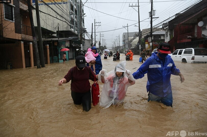 【11月12日 AFP】フィリピンは3週間で3個目となる台風に見舞われ、首都マニラでは11日、大規模な洪水が発生し、一部の住人が屋根の上に取り残された。民間防衛局によると、カマリネスノルテ(Camarines Norte)州で少なくとも1人が死亡し、3人が行方不明になっている。