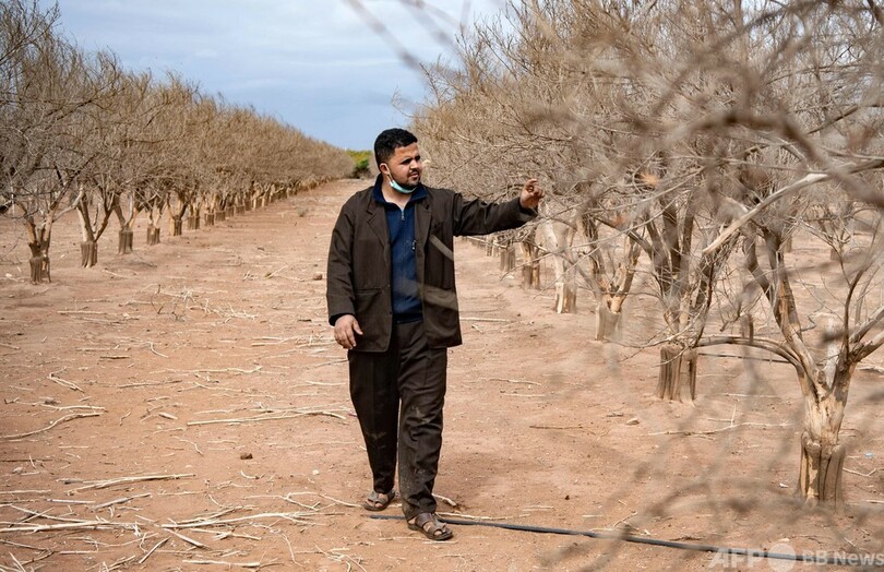農家のアハメド・ドリウチ(Ahmed Driouch)さんは、ため息をつきながらオレンジの木を指した。「樹齢は20年近くですが、枯れています。水がもうないんです」と語った。枯れた木々が干ばつの悪化を物語っている。