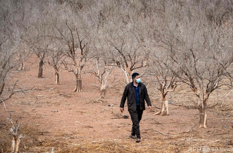農家のアハメド・ドリウチ(Ahmed Driouch)さんは、ため息をつきながらオレンジの木を指した。「樹齢は20年近くですが、枯れています。水がもうないんです」と語った。枯れた木々が干ばつの悪化を物語っている。