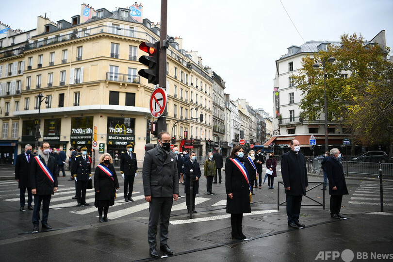 ジャン・カステックス(Jean Castex)首相とパリのアンヌ・イダルゴ(Anne Hidalgo)市長は13日、スタジアム「スタッド・ド・フランス(Stade de France)」やカフェ・バー「ル・カリヨン(Le Carillon)」、コンサートホール「バタクラン(Bataclan)」など、襲撃のあった現場で執り行われた追悼式典に出席。式は新型コロナウイルス流行を受け規模を縮小して行われた。