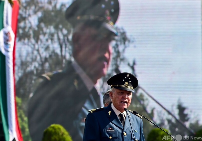 米司法省とメキシコ連邦検察庁は共同声明で、この拘束以降、メキシコの検察当局が独自に捜査を開始したと発表。「両国があらゆる形の犯罪に対して共同戦線を張っていることを示すために、メキシコ法の下でシエンフエゴス前国防相の捜査を実施し、場合によっては起訴できるよう、米司法省は米国での起訴を取り下げる決定を下した」と述べた。(c)AFP