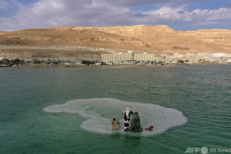 【11月18日 AFP】イスラエルのリゾート、エンボケック(Ein Boqeq)の死海(Dead Sea)で15日、塩でできた「砂浜」でくつろぐサンタクロースの姿がみられた。
