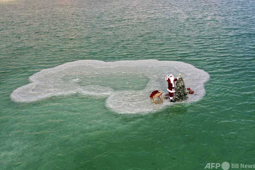 【11月18日 AFP】イスラエルのリゾート、エンボケック(Ein Boqeq)の死海(Dead Sea)で15日、塩でできた「砂浜」でくつろぐサンタクロースの姿がみられた。