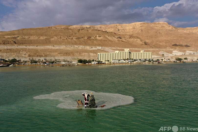 【11月18日 AFP】イスラエルのリゾート、エンボケック(Ein Boqeq)の死海(Dead Sea)で15日、塩でできた「砂浜」でくつろぐサンタクロースの姿がみられた。