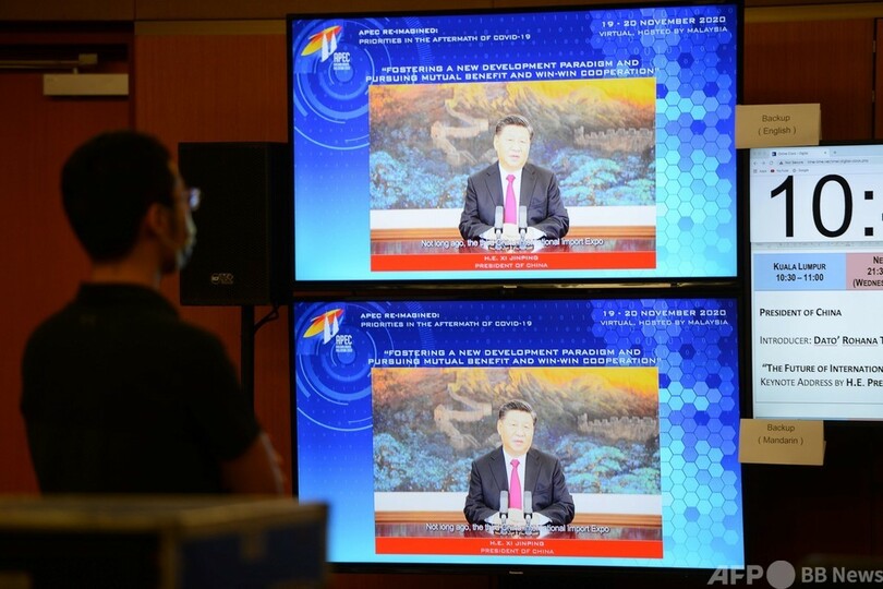 【11月19日 AFP】中国の習近平(Xi Jinping)国家主席は19日、オンラインで開催されているアジア太平洋経済協力会議(APEC)の会合で、中国は「開かれた」貿易を進めていくとし、保護貿易主義に警鐘を鳴らした。