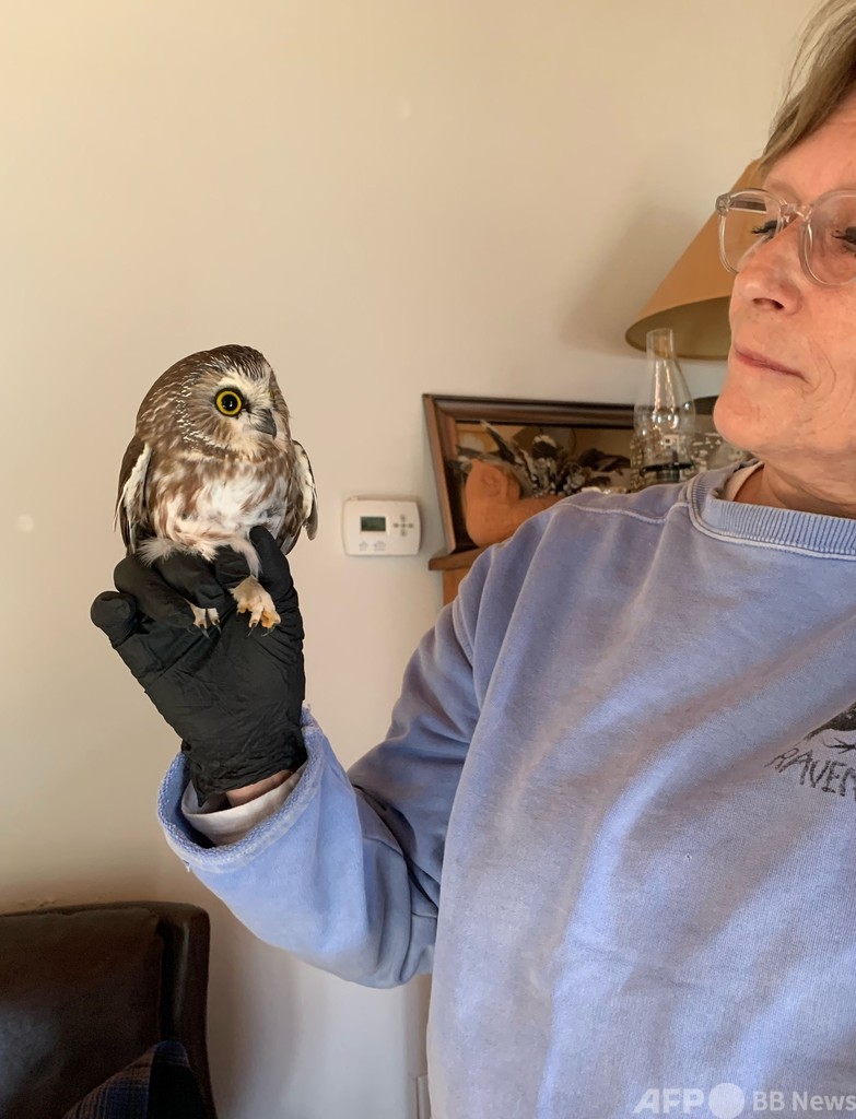 フクロウは「アメリカキンメフクロウ」という種で、「ロックフェラー」と名付けられた。(c)AFP